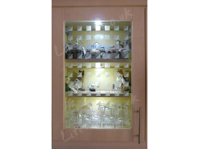 Below, a kitchen cabinet illuminated with 3 × 1w LED Modules (in white).