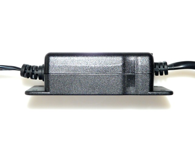 A flange is built onto the Power Supply allowing the power supply to be fastened into place.