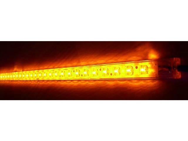 The LEDs are housed in a Polycarbonate Bar making the product very rugged and splashproof. The bars are flat just 8m deep by 14mm wide and can flex to follow mild contours.