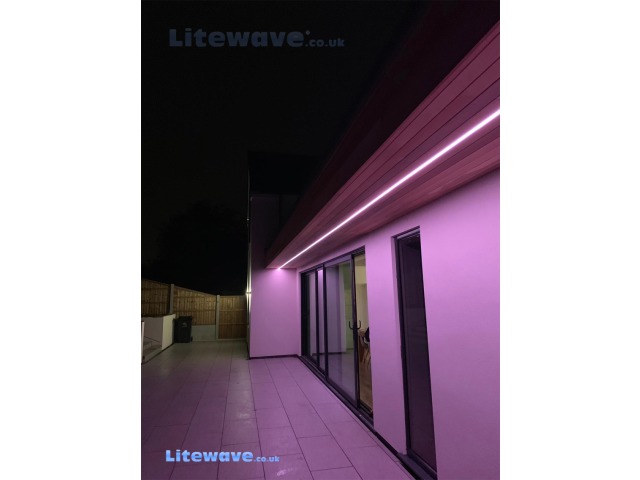 Our Litewave Pro ® Soffit Lighting Kit includes our Branded Strip Lighting and Aluminium Channel for flush fitting into any soffit with a recess behind.