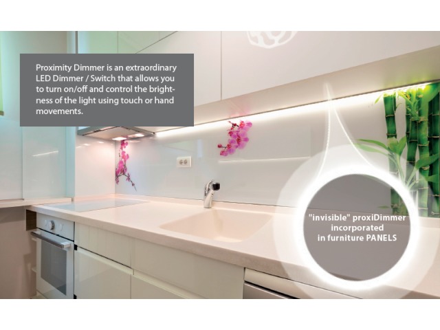 The Proximity Dimmer makes it possible to control the brightness of our LED Strip or our other (12vdc) single colour light sources by touch or gesture.